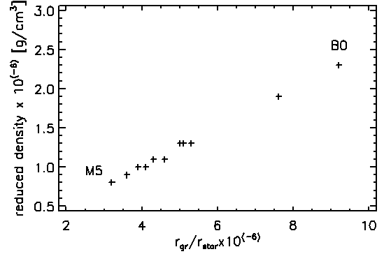 reduced density (to a radius of 8. 1013 cm) with the stellar rgr/rstar. The sequence