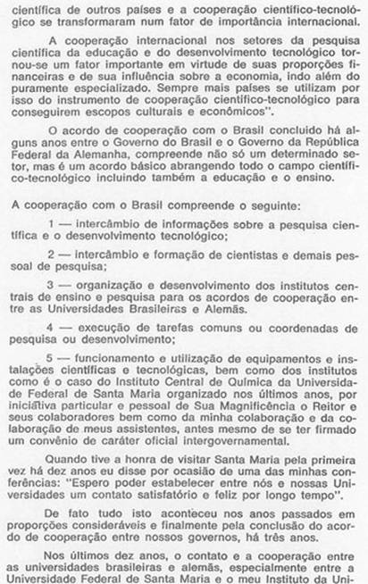 representatives of the UFSM: 1: Professor Dr.José Mariano da Rocha Filho, Vice-chancellor 2: Professor Dr.Helios Bernardi, Prorector 3: Author, Diretor Coordinador of the Chemical Central Institute Plate 11 a: