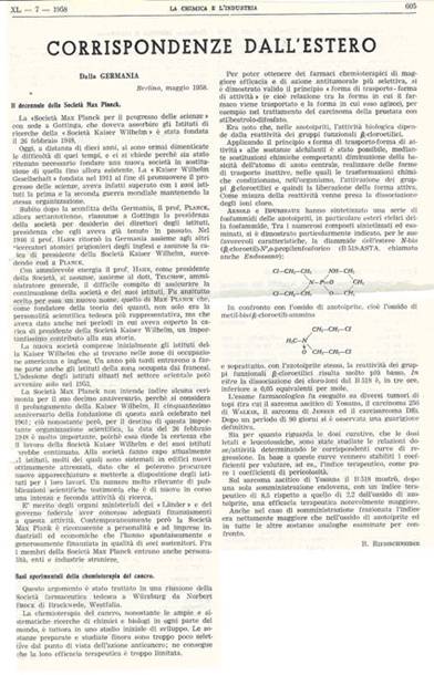 diagrams [Plates of large scale 1x2 to 2x3 meters] produced in H) “Correspondenze dall’estero (dalla Germania)” per la Rivista „La Chimica e l’Industria“, Milano The editor of the above-mentioned Italian technical
