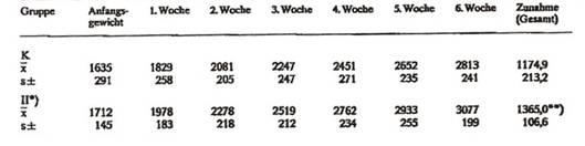 Tab 2: Growth experiments on rabbits ♀ (body weights in g)