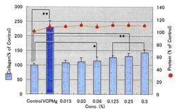 Diagram 3b: COLLAPLANT PO accelerating the collagen synthesis in human fibroblasts COLLAPLANT PO, lot CP-1 has a significant effect of collagen synhesis in fibroblasts: Diagram 3b and Table 9c.