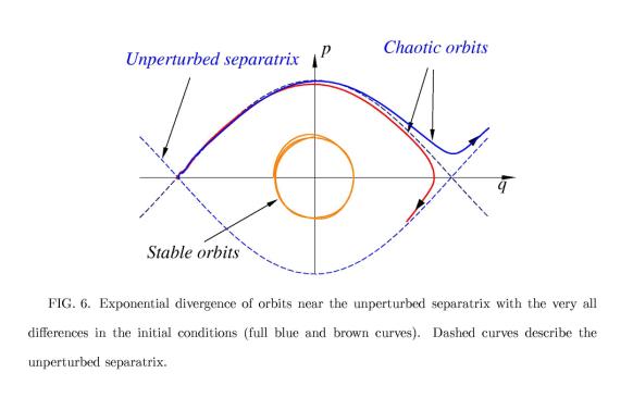 onset of chaotic motion in so-called Hamiltonian systems. This example also