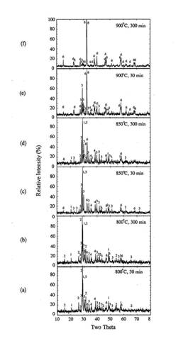 30 minutes in air, and quenched in air. Figure 8 shows the XRD patterns of the