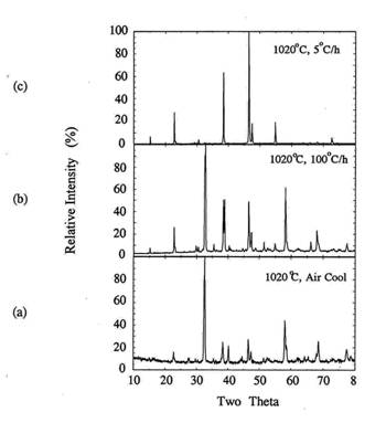 9. XRD for the melt processed samples at 1020℃ with different heating rates. (a) 100℃/h,