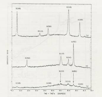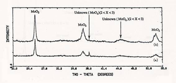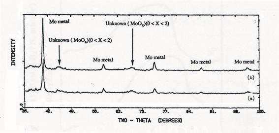 patterns of samples after TPR upto 1000C: (a) calcined 4 atoms Mo/nm2