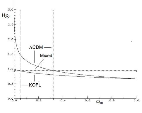 family of intermediate (mixed) models. In this paper we have compared three different models, LCDM, KOFL for k=-1, and a mixed model, taking