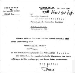 des Rektors der Wilhelms Universität Berlin vom 18.7.1947: Lehrauftrag (teachingassignment) 2: Brief
