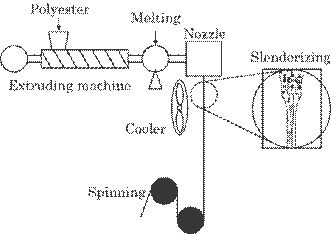 5.21 shows a rough schematic diagram of the spinning process. Polyester