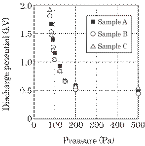 Discharge voltage for various discharge conditions when the pinhole was shifted from the needle,