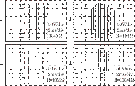 discharge characteristics for R = 0, 1, 10, and 100 M