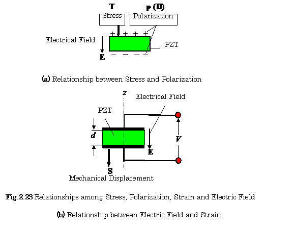 mechanical stress into electrical polarization and vice versa. Figure 2.23 (a) shows the relationship between the stress (force per unit