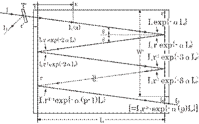 after the multi-reflection on a pair of side mirrors inside the cell. The