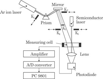 experimental setup. Laser light from a semi-conductor laser is divided into two