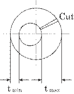 a cut: (a) the cut exists at a thick region, and (b) the cut exists at a thin