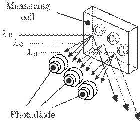 principle of the method. Laser light containing the three base colors (red,