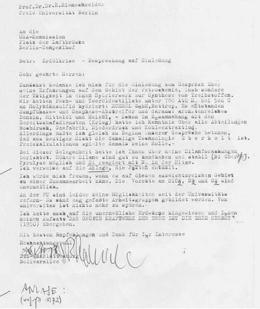 Unfortunately, his offer was not accepted. The oil crisis came two years later! At the time (1962 and 1971, respectively) however, HOECHST asked to