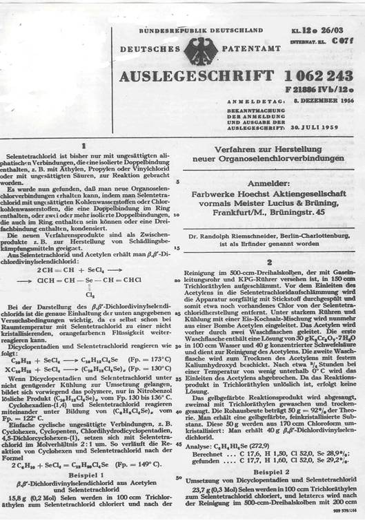 Farbwerke HOECHST on the basis of talks with Dr Beer, patent dept. [5] Ablichtung der Publikatioon in (2c) in