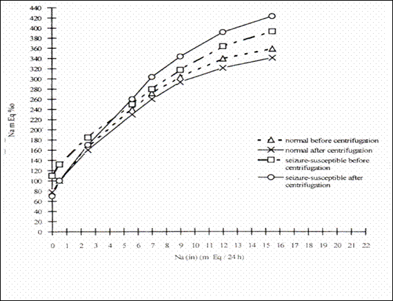 in the two groups of rats (227) : groups distilled water saline solution P(same group) reference 12,43 convulsion 11,39 P(between groups) The animals with Na+ ionic state transport