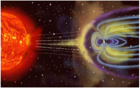 In a recent case, Earth-orbiting satellites detected the strongest magnetic storm resulting from a solar flare and Coronal Mass Ejection (CME) event. Figure 2 illustrates the size of the CME shockwave edge with respect to the size of the sun at the point of the outburst. The eruption that produced this flare also sent a solar rippling through the sun’s atmosphere and ejected a CME toward Earth. By the time the CME reached the Earth, the shockwave leading edge had expanded to approximately 40 million miles across [3].