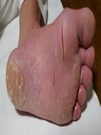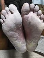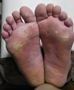 (3) Excretion from feet: Fig.3 show the examples for Uric acid crystals excreted from soles. The uric acid crystals are especially excreted from the soles of feet.