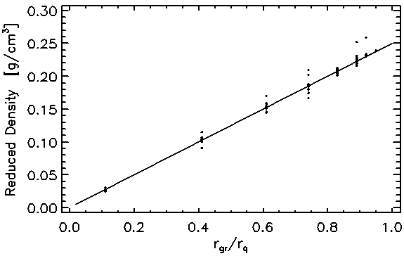 reduced density with rgr/rq for the sample of 341 QSOs. The mean line equation is: ρ˜ =