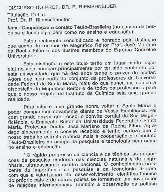 R.Riemschneider, Discurso para a inauguração do Instituto Central de