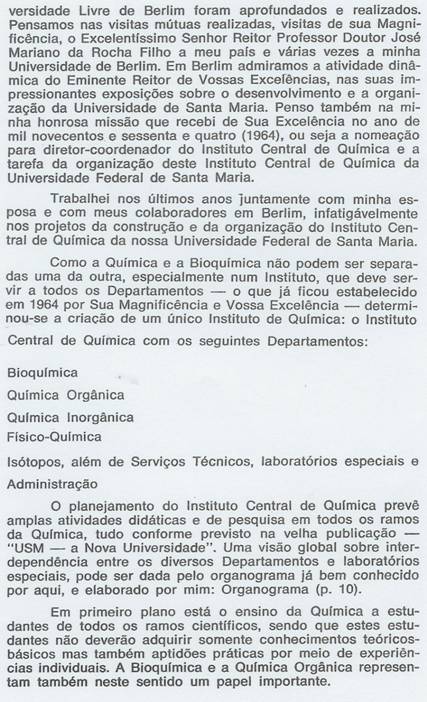 Commentary: Autobiography: Bonded to People, Part II Central Institute of Chemistry, Universidade Federal de BWW Life Fellow Member Professor Randolph Riemschneider has summarized
