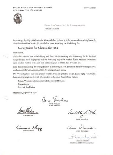 Nobel Prize winners such as Profs Alder/Diels, Butenandt, R.Kuhn, Pauling,