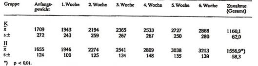 Tab 2: Growth experiments on rabbits ♀ (body weights in g)