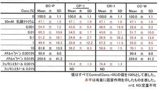 The dermatologic compatibility have been tested in the usual way. The Rye Placenta Extract (Table 6) passed all tests without showing any irriation and without any negative results: - Open epicutaneous test of sensibilisation of guinea pig for 3 weeks according to BÜHLER, - eye irritation test with rabbits according to DRAIZE, - examination of primary skin irritation with rabbits (DRAIZE), - clinical-allergological examination: PATCH-test with human beings. In addition: AMES test for mutagenic actitivity, carried out without and with metabolic activiation (screening). Quality standard of “Triticale-Placenta-Extract” (TRICELL) in (11d).