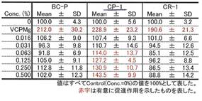 Table 9b: Whitening effect of COLLAPLANT PO, lot CP-1, mentioned in Table 9a; detection method: melanoma B16-test. In the patent (19) relating the “whitening effect” of cosmetic additives you find a detailed prescription of the analytic method used to control melanin synthesis[4]; cf. APPENDIX VI 1.