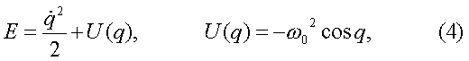 As was mentioned above for E < w02 the pendulum oscillates about the lowest level q = 0, and this