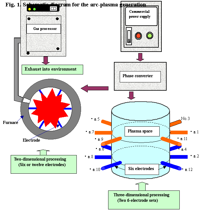 three-phase commercial power supply is used for generating the arc-plasma. From