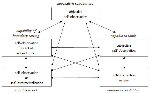 Commentary: Globalization: Individuality in a Global Community By Professor Dr. Bernhard J. Mitterauer Institute of Forensic Neuropsychiatry, University of Salzburg Salzburg, Austria My thesis is this: if we intend to generate a global community and attempt to cope with its inherent problems, we can only be successful if we understand what an individual is and according to which principles inter-individual communication works. The argumentation is based on a system-theoretical model called polyontological self-observation that I have developed over the past years (Mitterauer, 2003). After presenting this model of individuality, principles of inter-subjective communication are deduced providing a theoretical background for constructive global communication. Model of the polyontological self-observation Living systems are self-referential systems (von Foerster, 1993). The principle of self-reference guarantees the maintenance of the circular organization of a living system and its identity or individuality. From a psychological point of view, self-reference connotes narcissism (Pritz, Mitterauer, 1977). The German-American philosopher Gotthard Guenther contributed a great formal model to a comprehensive theory of subjectivity (individuality) which I have further elaborated for an application in interdisciplinary research (brain research, psychopathology, robotics, philosophy). According to Guenther, a universe is composed of countless distinct loci of existence embodying a polyontological structure (ontological is derived from Greek ‘on’=being, ‘logos’=science and ‘polys’=many). Therefore, living systems like humans embody preferred loci capable of self-observation. Before I describe the polyontological model of self-observation, an outline of its formal basis is necessary. In his study “time, timeless logic and self-referential systems”, Guenther (1967) presented a polyontological system by introducing novel ontological loci that transcend the classical ontological dichotomy between object and subject in general. “What do these new ontological loci signify? The shortest possible answer is: Being, its reflection in Thought and Time represents the whole range of objective existence as reflected in three-valued ontology. Yet there must be a subject of cognizance conscious of an objective world. This subject must be capable of distinguishing between the world as outlined in its ontology, its thought-image of this world, and itself as being the producer of the image. Since the first three loci refer to the world, the fourth locus must accommodate the image making and the fifth its producer. The classic tradition of formal logic neglects this ambiguity. And thus it does not understand the Janus-face of subjective self-reference. Subjectivity (individuality) is both the still image of the world as well as the life process of making an image; and what we call a personal ego constitutes itself in the triadic relation between environment, image and image-making.” Here, Guenther describes five ontological loci constituting a subjective system that can also be interpreted as standpoints of self-observation (Mitterauer, 2003). These loci may embody the elementary capabilities of a human brain to generate and to maintain its identity or individuality. Figure 1 shows these standpoints of self-observation as a closed (self-referential) system. With regard to the brain Being is comparable to objective self-observation accomplished by the apparative equipment of a dynamic genome. Reflection of being in thought is interpretable as subjective self-observation in the sense of self-representation. This ontological realm comprises our cognitive capabilities to think, to reflect, to plan, etc. Both objective and subjective self-observation occur in time. However, in what time? This important issue will be discussed further below. ![]() Figure 1. Model of the poly-ontological self-observation Self-observation is also embodied in the brain as self-instrumentalization. Here we deal with our capabilities to act and generate technical devices. In other words: underlying highly complex genetic mechanisms enable the brain to produce “organs” for the realization of its intentional programs in the inner and outer world. Most importantly, self-observation as an act of self-reference permanently constitutes the individual self with the existential capability of inner-systemic integration of the ontological loci and of boundary-setting between its subjectivity and the systems of the environment. In addition, we are faced with the problem which time conception sets the basis for self-observation as an act of self-reference. From a biological point of view, living systems operate both in ontogenetic and evolutionary time. Despite the fact that our biological life span is limited, our brain is still capable of generating new cognitive and technical products independent of its ontogenetic decay in the sense of evolution. In contrast, if we describe the act of self-reference as a permanently rotating cycle, a third time conception must be introduced which I call permanence (Mitterauer, 1989). This argument may explain the fact that human individuals in all cultures are determined by a conscious or unconscious longing for immortality, which is why religions play such an important role. Intersubjective communication Considering the five ontological loci outlined in Figure 1, these represent abstractions of countless ontological structures embodied in the microdomain of the brain. These ontological structures are called compartments, each of which operates in a specific quality of information processing (see Mitterauer and Kopp, 2003). Therefore, I speak of a polyontological brain (Mitterauer, 1998; 2007). It follows that the various operation domains in the brain do not in all aspects operate in a logical context, but there are also logical “breaks”, characterized by Guenther (1973) as discontexturaliti