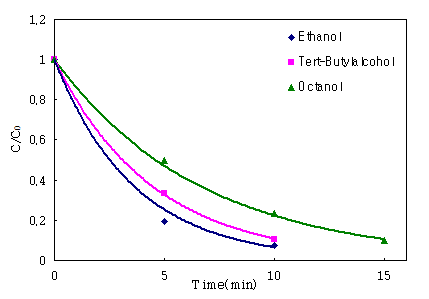 high-chained alcohols. The photodegradation efficiency was essentially