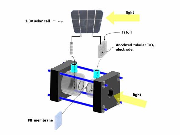 1. Schematic view of the reactor with anodized tubular TiO2 photoanode,