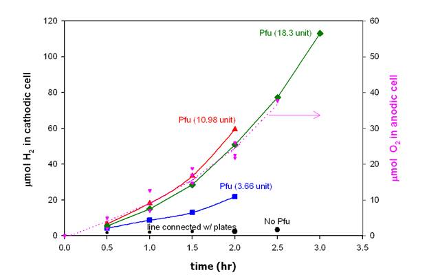 rate of ca. 30 μmol/(hr´cm2). It revealed the rate of hydrogen production was ca. 30