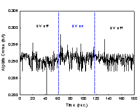 with the application of 5,000 volts DC bias in three stages; (1) no UV