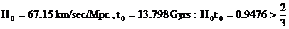 into account the values of H0 and t0 recently deduced
