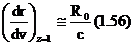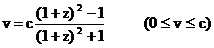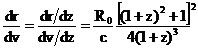 r=R0-R and velocity v, in terms of z (redshift),