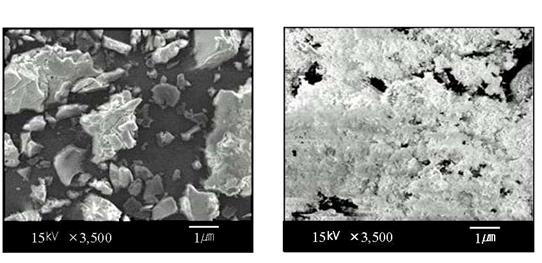 ![]() (a) (b) Figure 7. SEM photographs of PANi(EB)/PVP composites: (a) without VA-044, (b) with VA-044.
