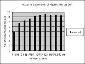 the numbers of mitochondria per cell in respective aging groups. Fig. 9. Histogram showing