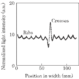 that an intensity change in scattered light due to creases, i.e., a signal, was