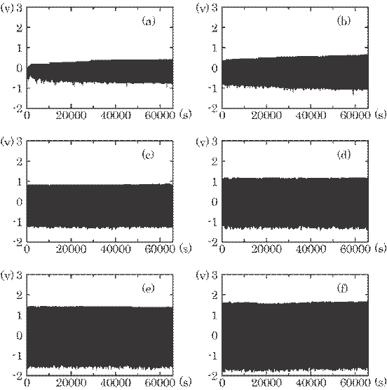 vibration amplitude of the metal shaft. The output, (d), is lowest of all and