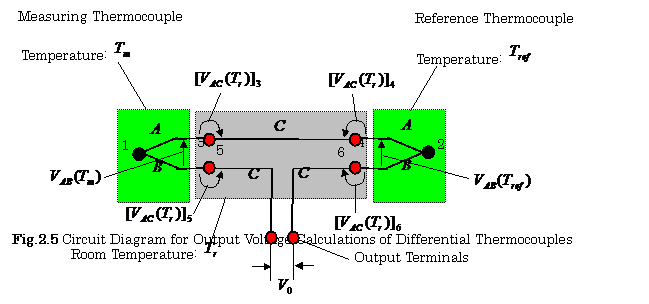 shown in Fig.2.4, the differential connections of thermocouples are used for