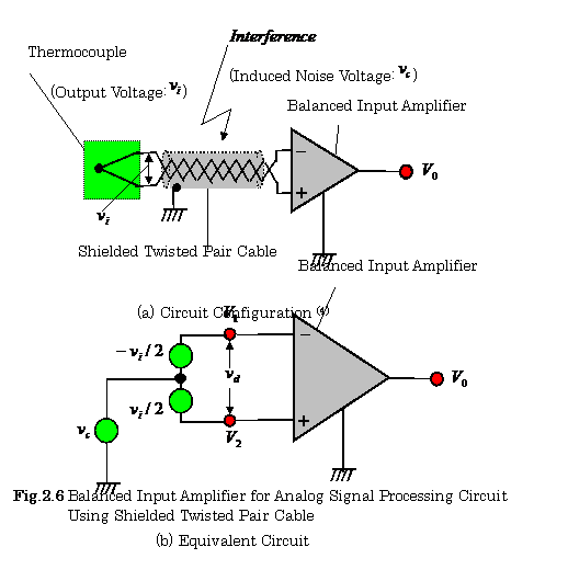 2.6 shows a balanced amplifier for an analog signal processing circuit using a shielded