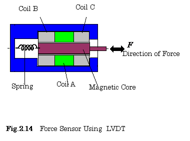2.14 shows a force sensor using the LVDT. The force is converted into the displacement
