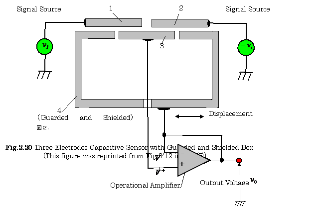 Transducer Using Area of Electrodes (5) A. Basic Circuit Configuration Figure 2.17 shows a capacitance transducer using three electrodes,