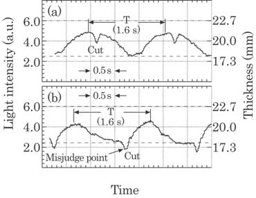 a cut: (a) the cut exists at a thick region, and (b) the cut exists at a thin