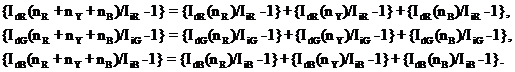 side, the unknown quantities, i.e., the dye concentrations n(nR, nY,